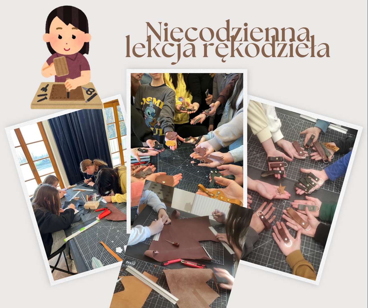 Klasy 6a i 6b ze swoimi wychowawczyniami uczestniczyły w ciekawych warsztatach. Uczniowie robili breloczki do kluczy, wykorzystując skórę, nity oraz różne maszyny i narzędzia, o istnieniu których nawet nie mieli pojęcia. Trochę pracy, mnóstwo kreatywności i fajnej zabawy pozwoliły na lekcji rękodzieła, stworzyć małe arcydzieła!