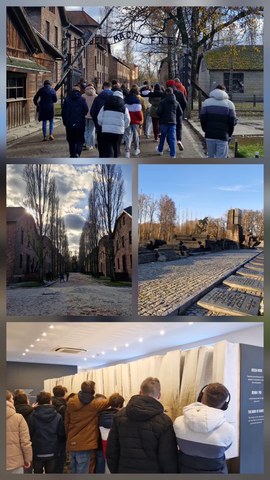 Uczniowie klas siódmych i ósmych wraz opiekunami zwiedzili Miejsce Pamięci i Muzeum Auschwitz-Birkenau. Z przejęciem wysłuchali przewodników, którzy opowiadali o losach ludzi, którym przyszło zmierzyć się z okrucieństwem czasów II wojny światowej. Uczestnicy z zaciekawieniem i zadumą oglądali miejsca związane z tematyką obozową. Symbolicznie przedstawiciele klas zapalili znicze przy Ścianie Śmierci. Nie był to łatwy wyjazd, ale dzięki niemu możemy docenić to, co mamy na co dzień.