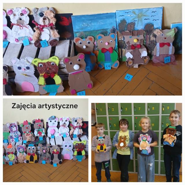 dzieci na zajęcia artystycznych oraz w klasie 3a postanowiły uczcić pluszowe misie tworząc galerię tych przemiłych pluszaków, które wnoszą tyle radości w życie każde dziecka.