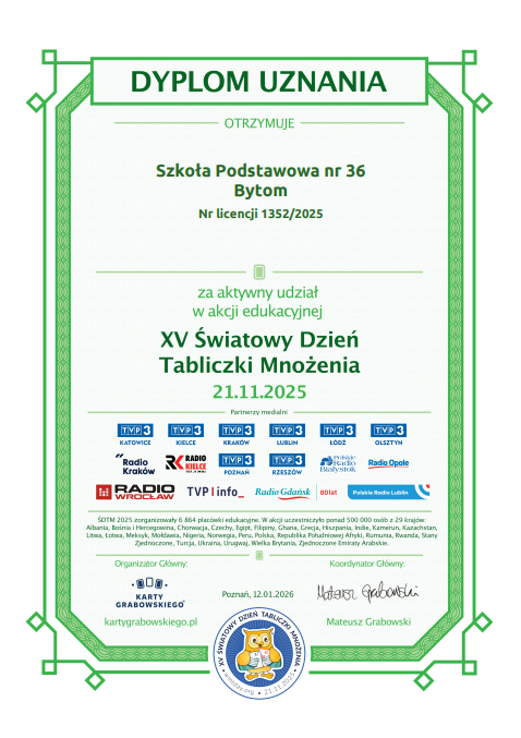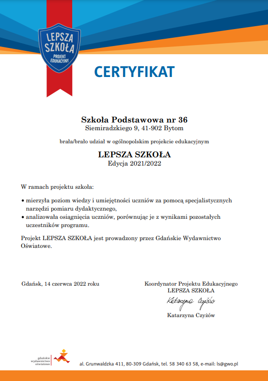 Witamy w Szkole Podstawowej nr 36 w Bytomiu