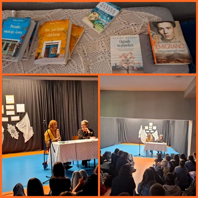W czwartek 18 września uczniowie starszych klas mieli okazję posłuchać bardzo ciekawych opowieści Sabiny Waszut, której książki od ponad dziesięciu lat można zdobyć w księgarniach. Pisarka chętnie opowiadała o swoich doświadczeniach twórczych, inspiracjach, podróżach nie tylko w przestrzeni, ale i w czasie – od lat bada historię Śląska i losy ludzi, którym przyszło żyć w trudnych czasach. Mieszkanka Chorzowa zaprezentowała nam swoje powieści w formie wystawki – każdy mógł obejrzeć przygotowane egzemplarze.