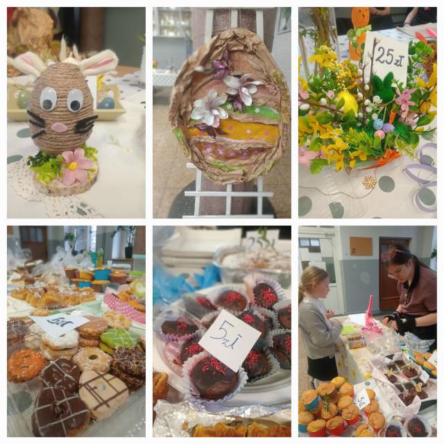 Każdy mógł znaleźć coś dla siebie: oryginalne ozdoby wielkanocne, palmy, pisanki, kurczaczki, kartki świąteczne, a także przepyszne ciasta, babeczki i ciasteczka. Wszystko zostało wykonane własnoręcznie przez uczniów, rodziców lub nauczycieli naszej szkoły.