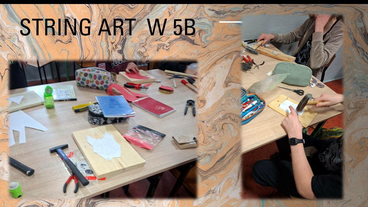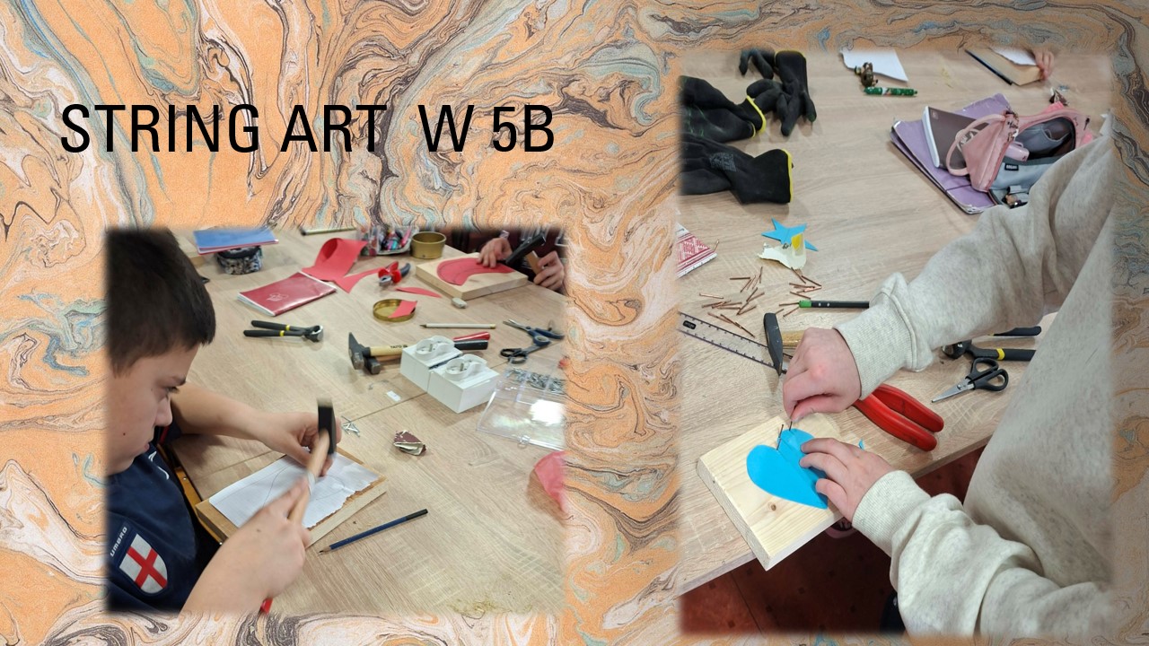 slide2-41 slide1-65String art to technika tworzenia obrazów poprzez nawlekanie nici między gwoździami wbitymi w drewno lub inną powierzchnię. Dziś na technice projektowaliśmy i zaczęliśmy tworzyć obrazy techniką Srting Art pomagając sobie narzędziami i przyrządami zakupionymi w ramach projektu Laboratoria Przyszłości. Trochę palce poobijane, ale efekty będą super.
