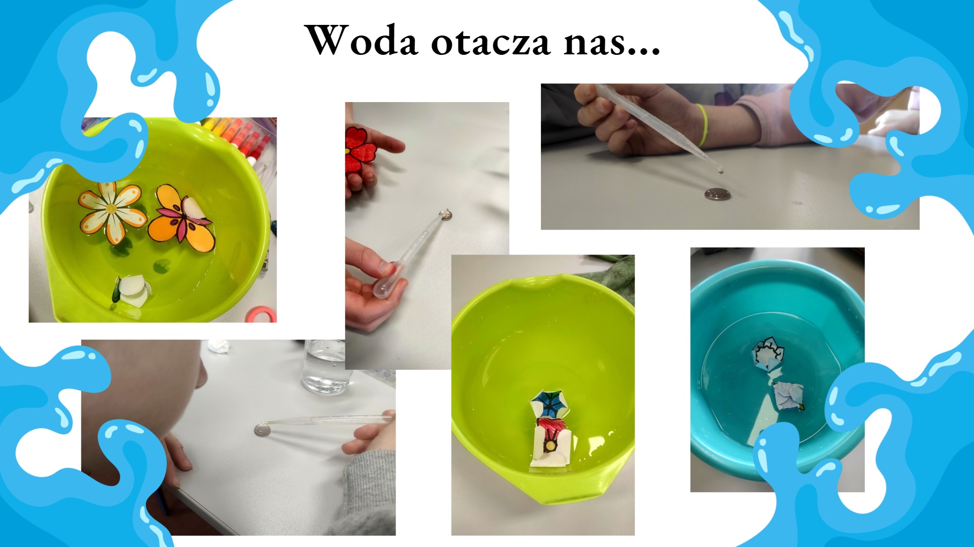 Podczas zajęć rozwijających uczniowie klas 4 zajęli się najbardziej rozpowszechnioną substancją w naszym otoczeniu – wodą. Badali jej właściwości i rolę jaką pełni w środowisku.